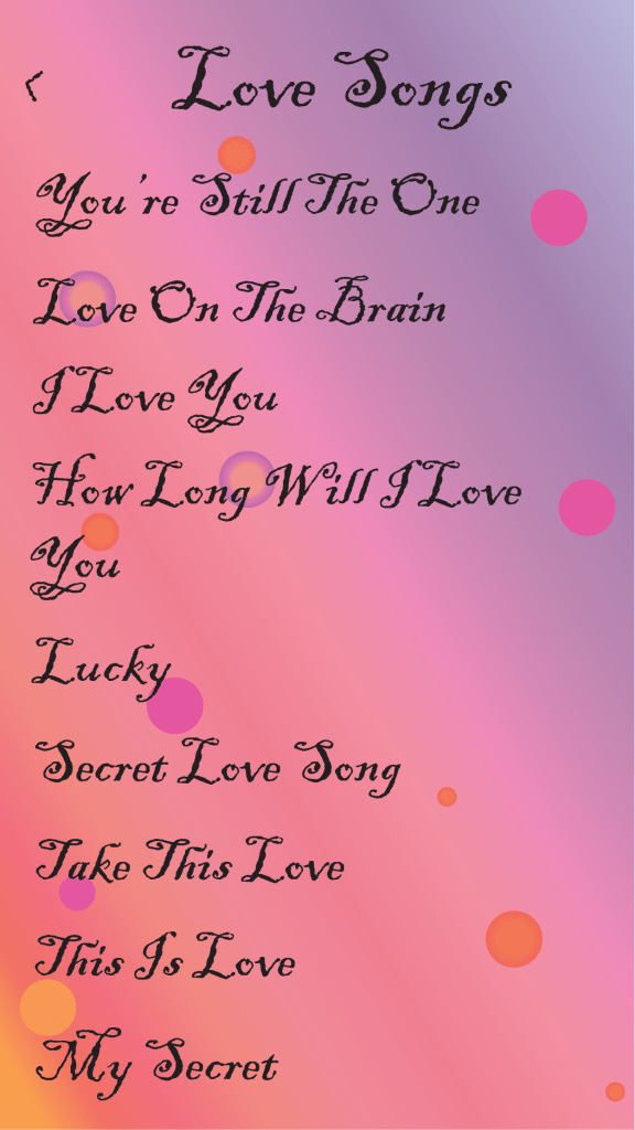 This music app is a platform to listen romantic song. I want give my user to feel like in a romantic world. It can have direct interactions between each other with their soulmate.